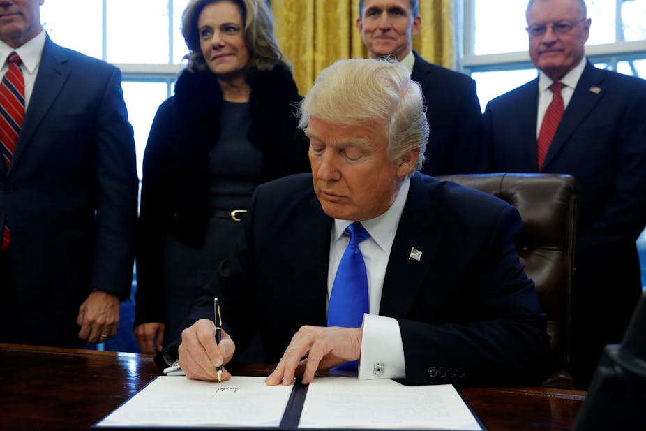 US President Donald Trump has signed a flurry of executive orders and actions in his first week-and-a-half in office. These have ranged from those starting the process to build a border wall with Mexico and withdraw from the Trans-Pacific Partnership to construction of the Keystone XL and Dakota Access oil pipelines.